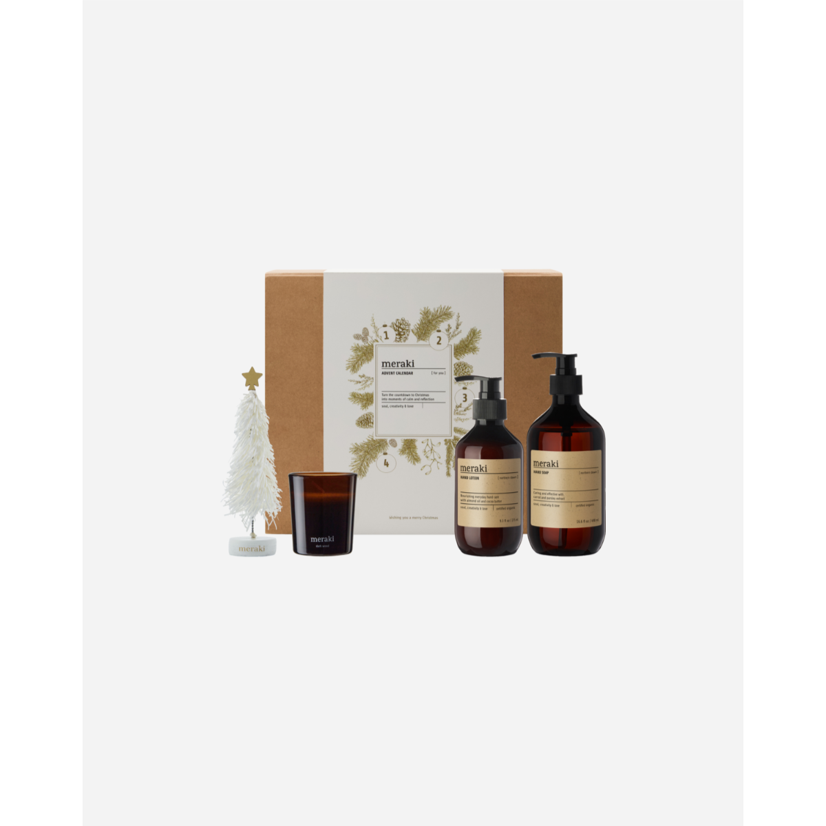 „Experience the magic of the holiday season with this elegant Advent gift box. Discover a new treasure each Sunday as you open these carefully selected surprises. Inside, you will find delightful items such as a fragrant candle and premium hand care products, each thoughtfully curated. Perfect as a special gift or a personal holiday treat, this collection brings sophistication to your festive celebrations.