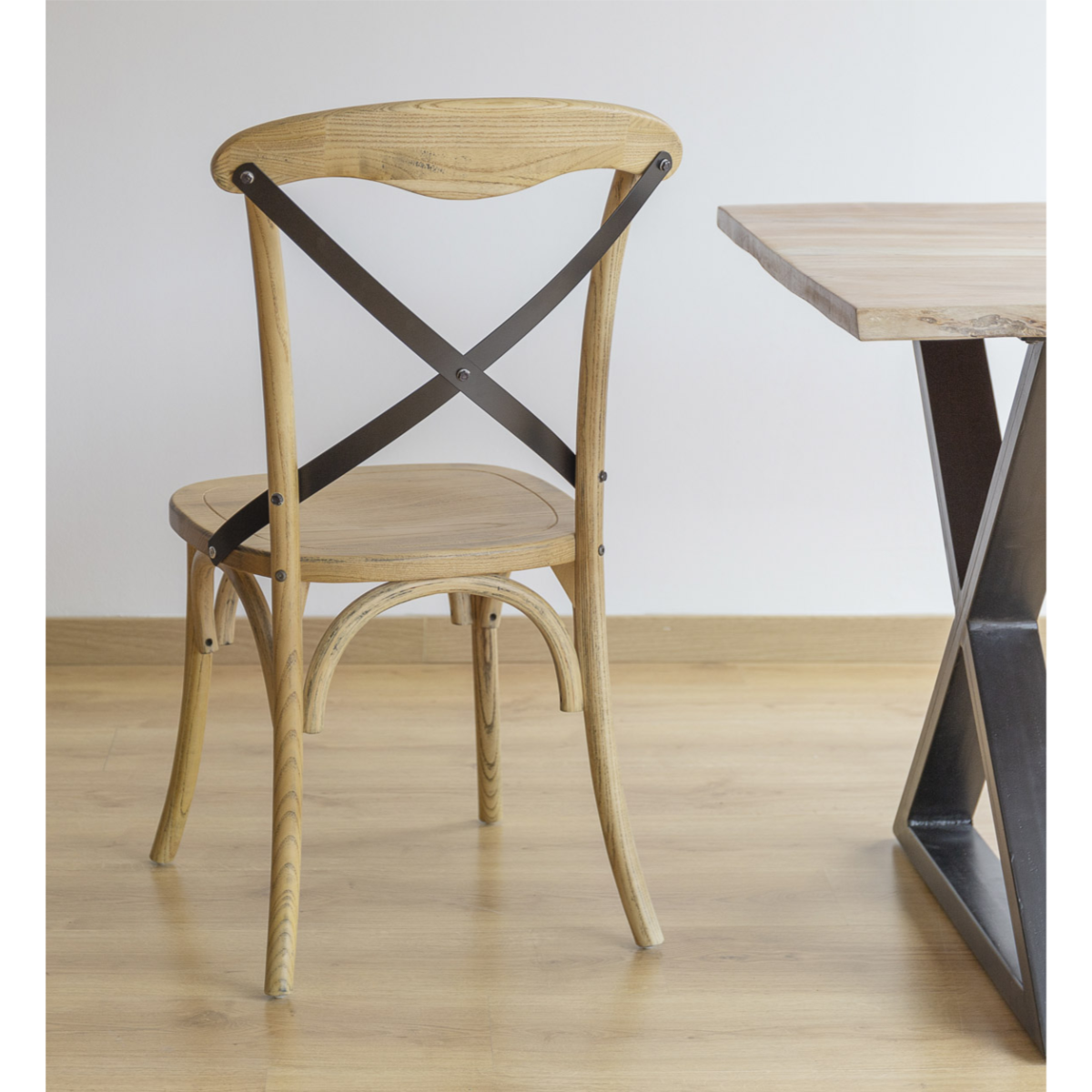 Handgerður stóll úr eik og járni