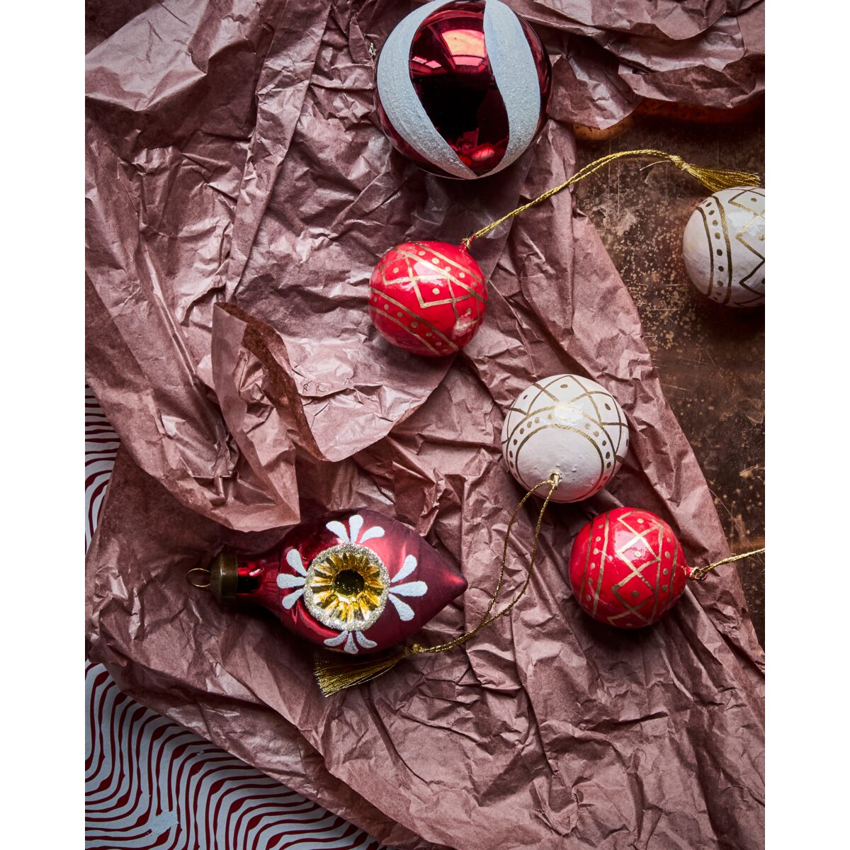 Handgerðar jólakúlur úr pappa