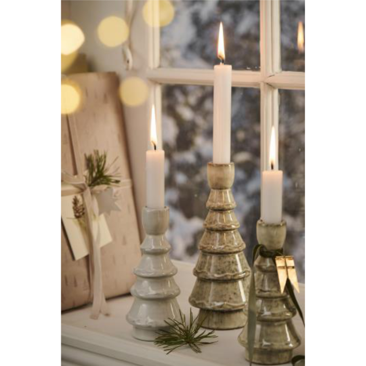 Tré kertastjaki - brúnn, 20.5cm